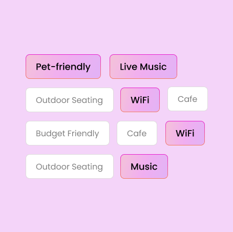 Filter businesses by the features you care about most. Tapsy makes it easy to find places that fit your lifestyle.